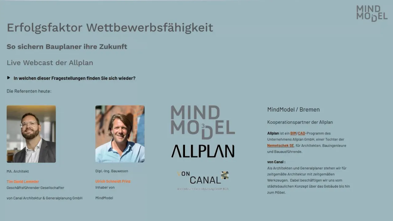 The competitiveness of a construction planning office is significantly determined by efficient structures, qualified employees, and modern digital processes. With a strategic approach to process optimization and the targeted use of software solutions such as ALLPLAN in combination with BIM EASY Pro, you can sustainably increase the efficiency, quality, and cost-effectiveness of your office.