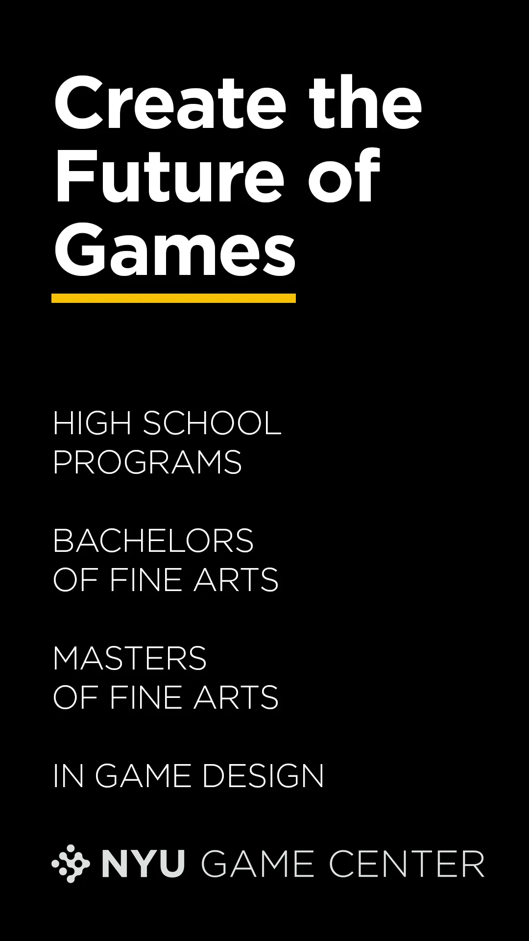 - Anyone interested in learning more about the NYU Game Center, our public programming, our academic programs, or anything else!