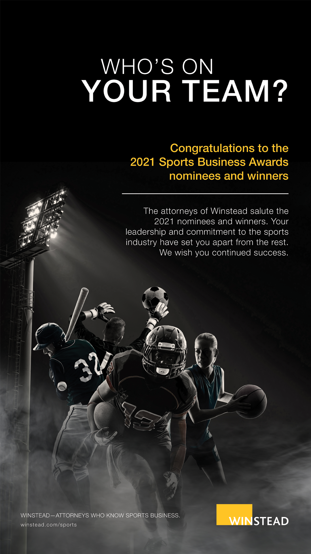 The national and international Sports Business practice at Winstead PC represents team owners, professional sports teams and franchises, sports authorities and other governmental entities, colleges and universities, concessionaires, host committees, the lending sector, and others on a variety of sports projects including: venue development, naming rights, licensing and leasing, acquisitions and investments, concessions, and private and public finance.