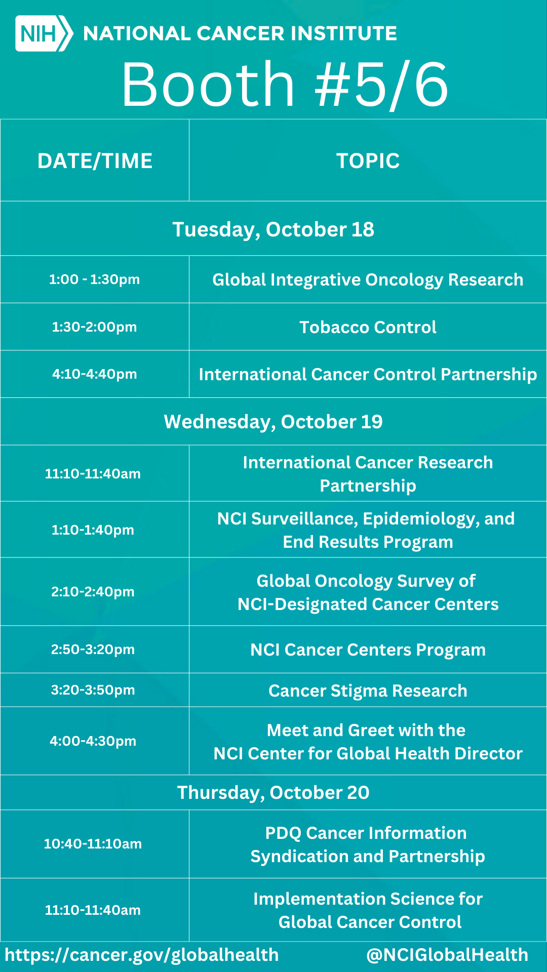 National Cancer Institute (NCI) is part of the NIH, one of 11 agencies that are part of the U.S. Department of Health and Human Services. NCI coordinates the U.S. National Cancer Program, which conducts and supports research, training, health information dissemination and other activities related to the cause, prevention, diagnosis, and treatment of cancer; cancer survivorship; and the continuing care of cancer patients and their families. NCI, Center for Global Health (NCI/CGH) supports the NCI mission by advancing global cancer research, and by coordinating NCI engagement in global cancer control. NCI/CGH has four strategic goals: (1) support innovative, impactful research that addresses key scientific issues in global cancer control and/or leverages unique scientific opportunities afforded by global collaboration; (2) support global cancer research training, particularly in low- and middle-income countries, that enables impactful global scientific collaboration; (3) promote the integration of current scientific knowledge in global cancer control; and (4) represent the NCI and promote its engagement with key partners in global cancer control.