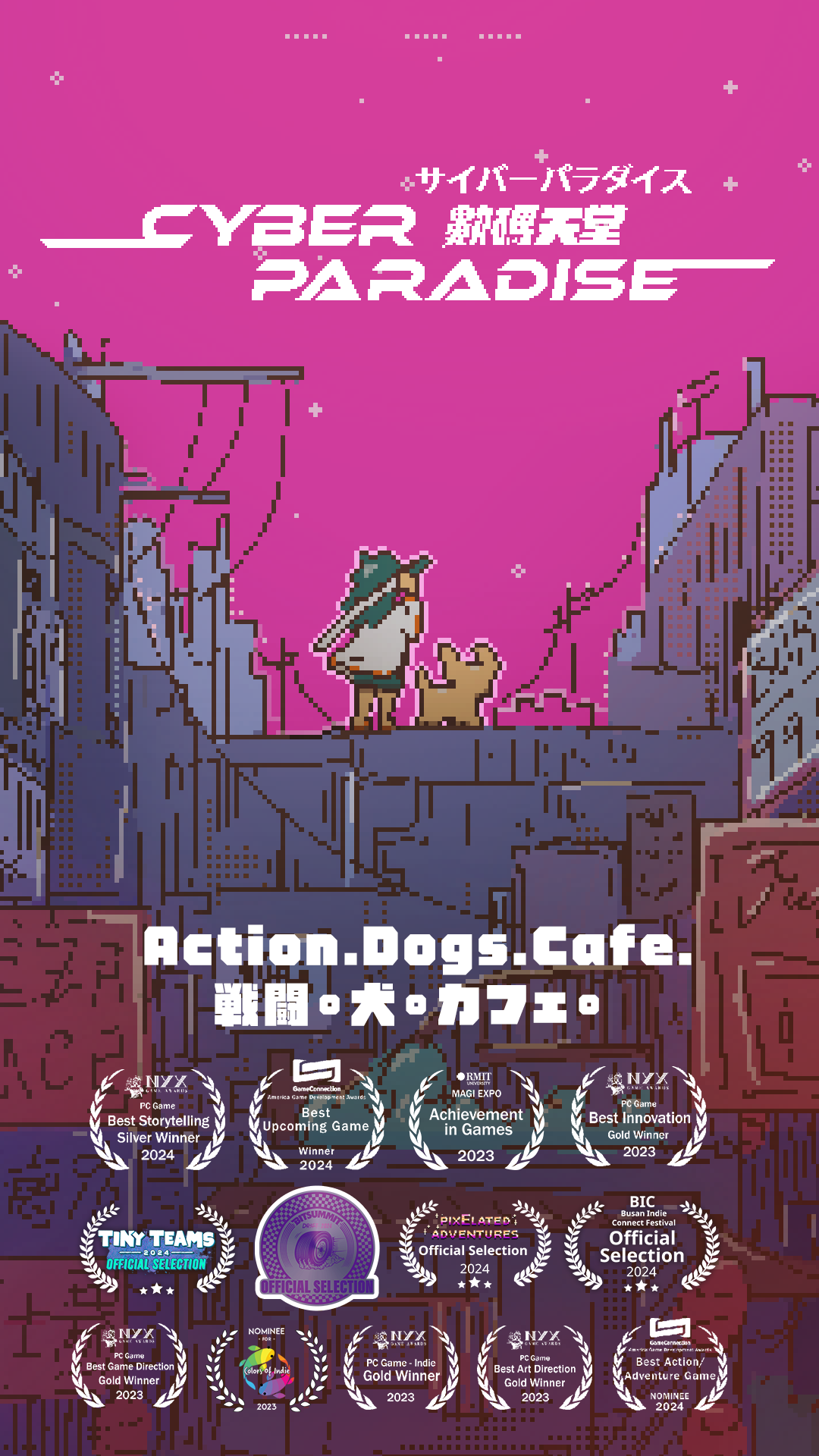 Bring Mini the Dog back to life digitally in a 2D atmospheric action roguelite adventure. Craft her cyber paradise with moments like sniffing dog butts. Discover a deeper dystopian story and build friendships in cozy cafe chats—A blend of adrenaline and solace.