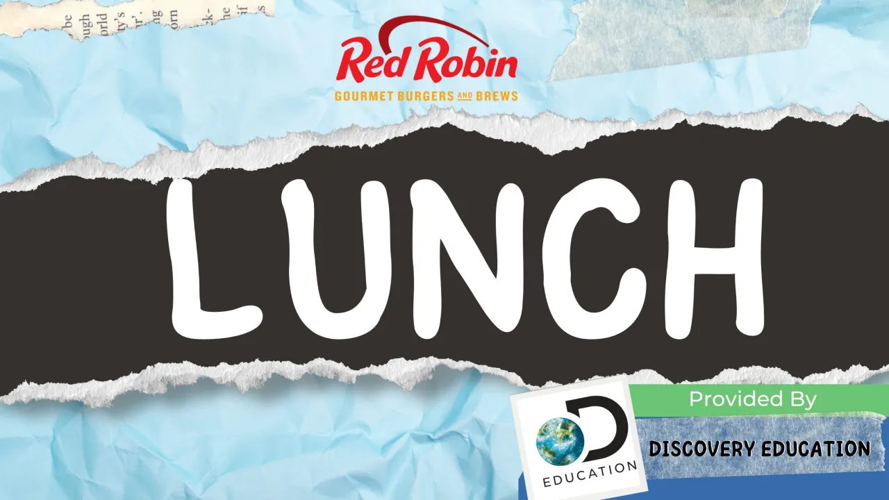 Take a break and enjoy lunch provided by Discovery Education! Red Robin (yum!) burger box lunches will be provided which will include a cheeseburger, chips, cookie, and a drink.