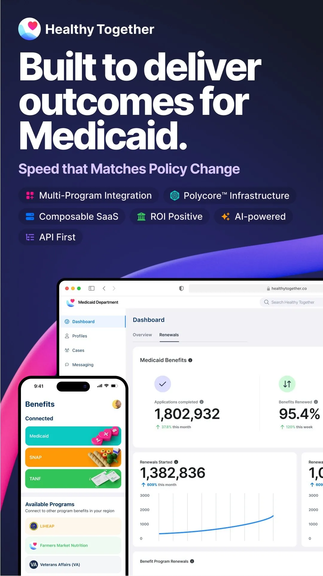 Healthy Together is a health technology company that provides SaaS solutions for Health & Human Services Departments. We build solutions specifically designed for government organizations that are managing benefit programs to help them increase access, improve the experience for participants, and automate processes / improve workflows for staff.