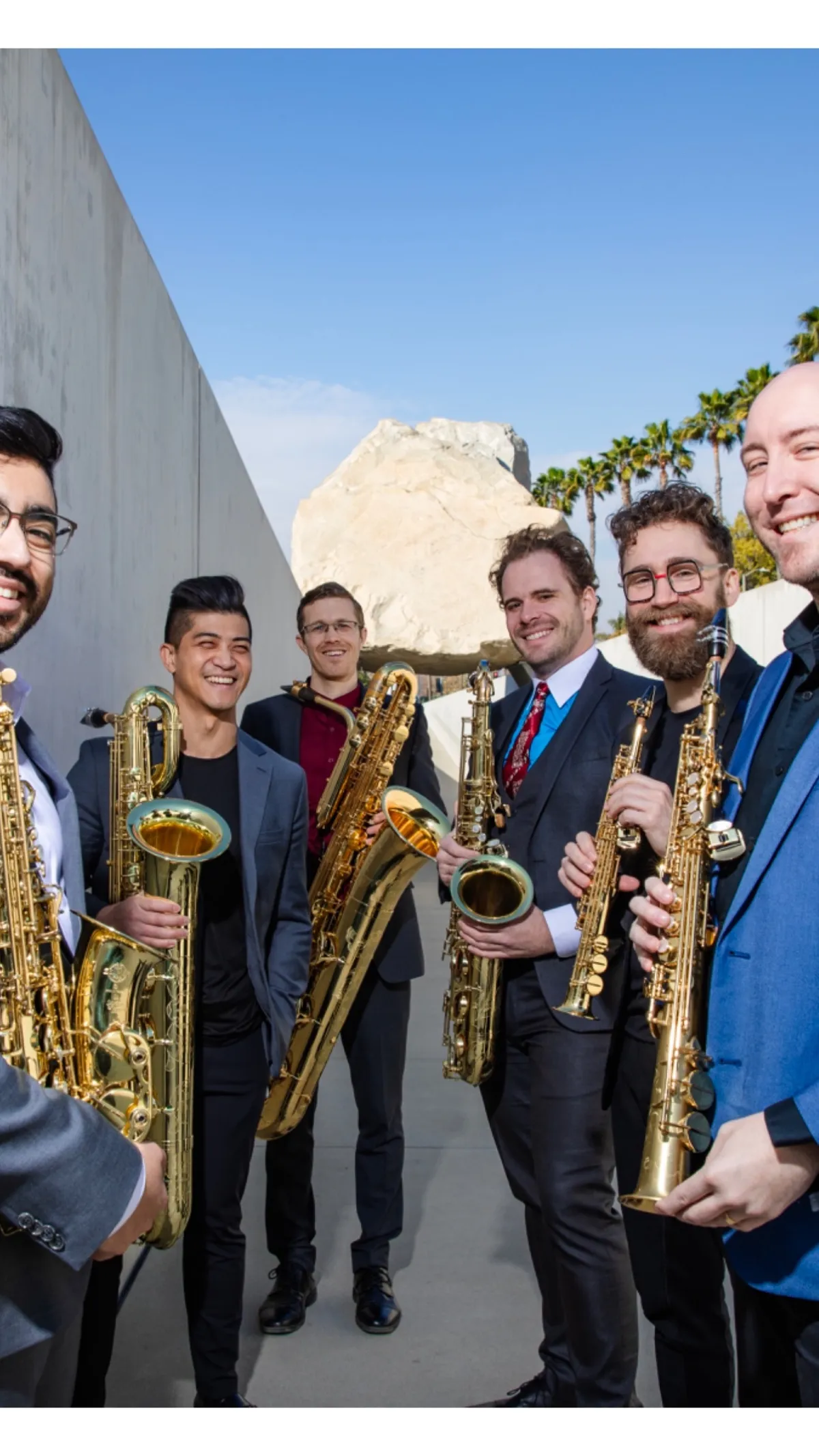 Featuring all six saxophones from sopranino to bass, The Moanin’ Frogs are unique on today’s chamber music landscape. First prize winners of the 2018 M-Prize Chamber Arts Competition, their passion, quality, variety, instrumentation, and focus on the audience experience set them apart. Comfortable in a wide array of venues, The Moanin’ Frogs deliver artist-level performances to small towns and major performance halls alike, performing for concert series, as concerto soloists, and for educational programs throughout the US and abroad. The Moanin’ Frogs have appeared at The Kennedy Center, Kelowna Community Concerts, Detroit Public Television, American Band College, Texas and Oklahoma Bandmasters Associations, Conn-Selmer Institute, World Saxophone Congress, Strasbourg, France, and as concerto soloists with the United States Air Force Band of the West. Their debut recording is available from Teal Creek Music.