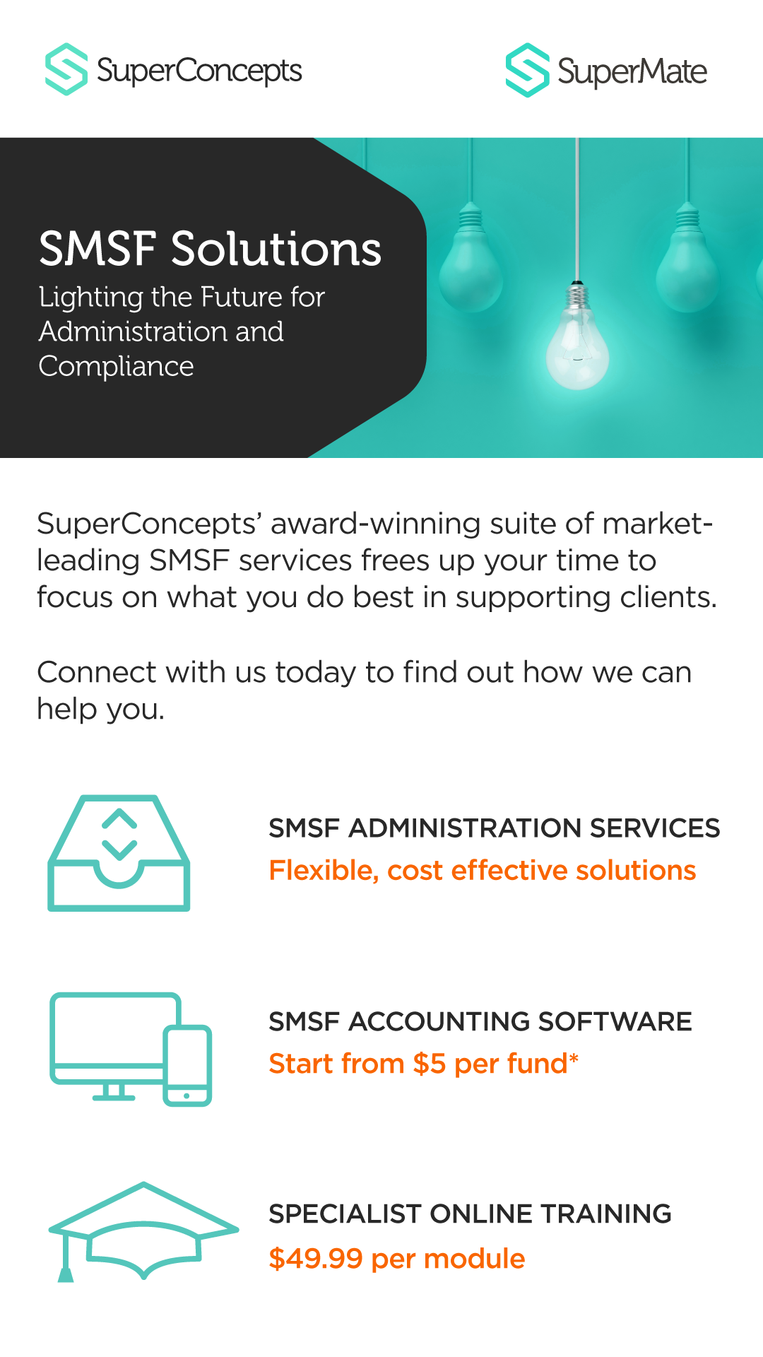 Award-winning and with over 30 years’ experience, SuperConcepts is a leading innovator in SMSF services. An expert and proven partner for thousands of trustees and the professionals who support them.