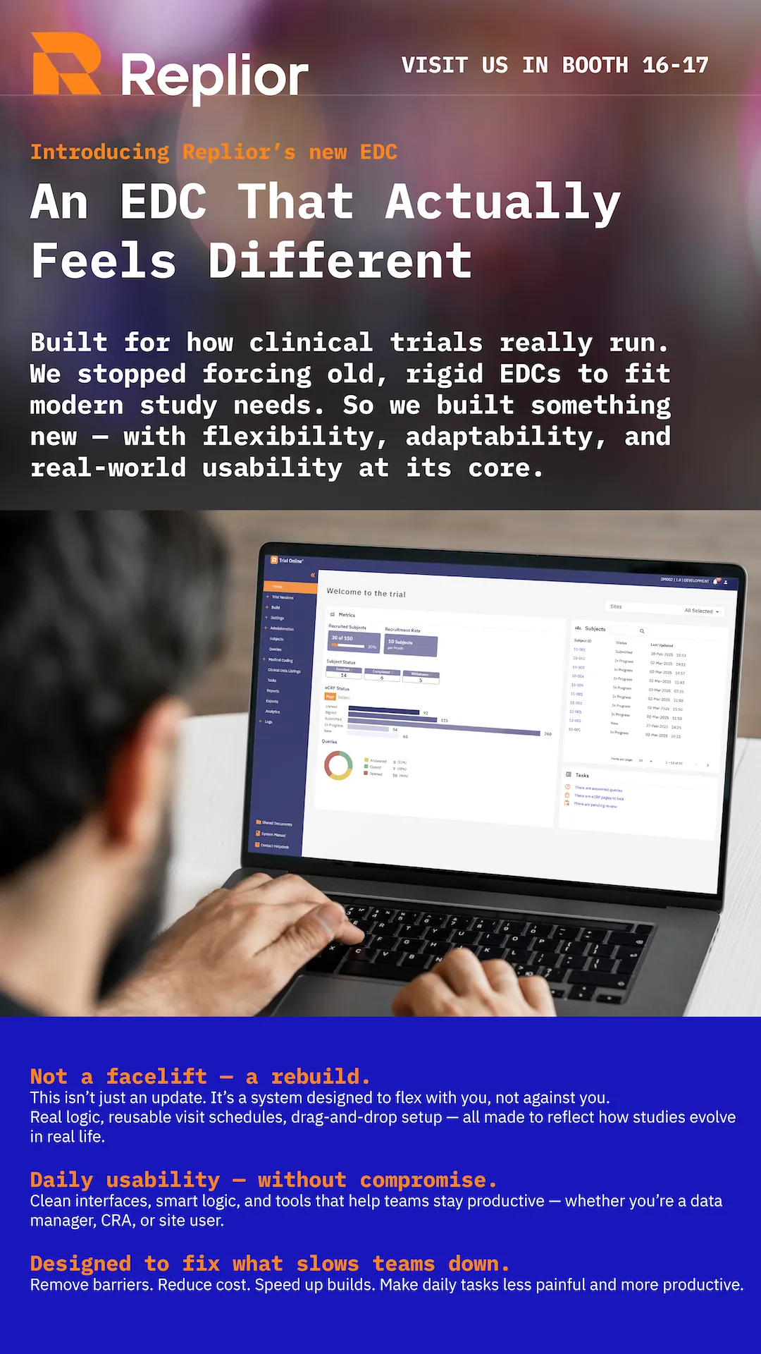 When it comes to transforming the clinical trials landscape, Replior does it by offering a full suite of tools designed specifically for all stakeholders but with a special focus on the patient. From an established EDC to an engaging best-in-class ePRO connected to Virtual Visits and eConsent, Trial Online Suite supports all phases of clinical trials in most therapeutical areas, collaborating tightly through trust and transparency with large pharmaceuticals to smaller biotech companies.