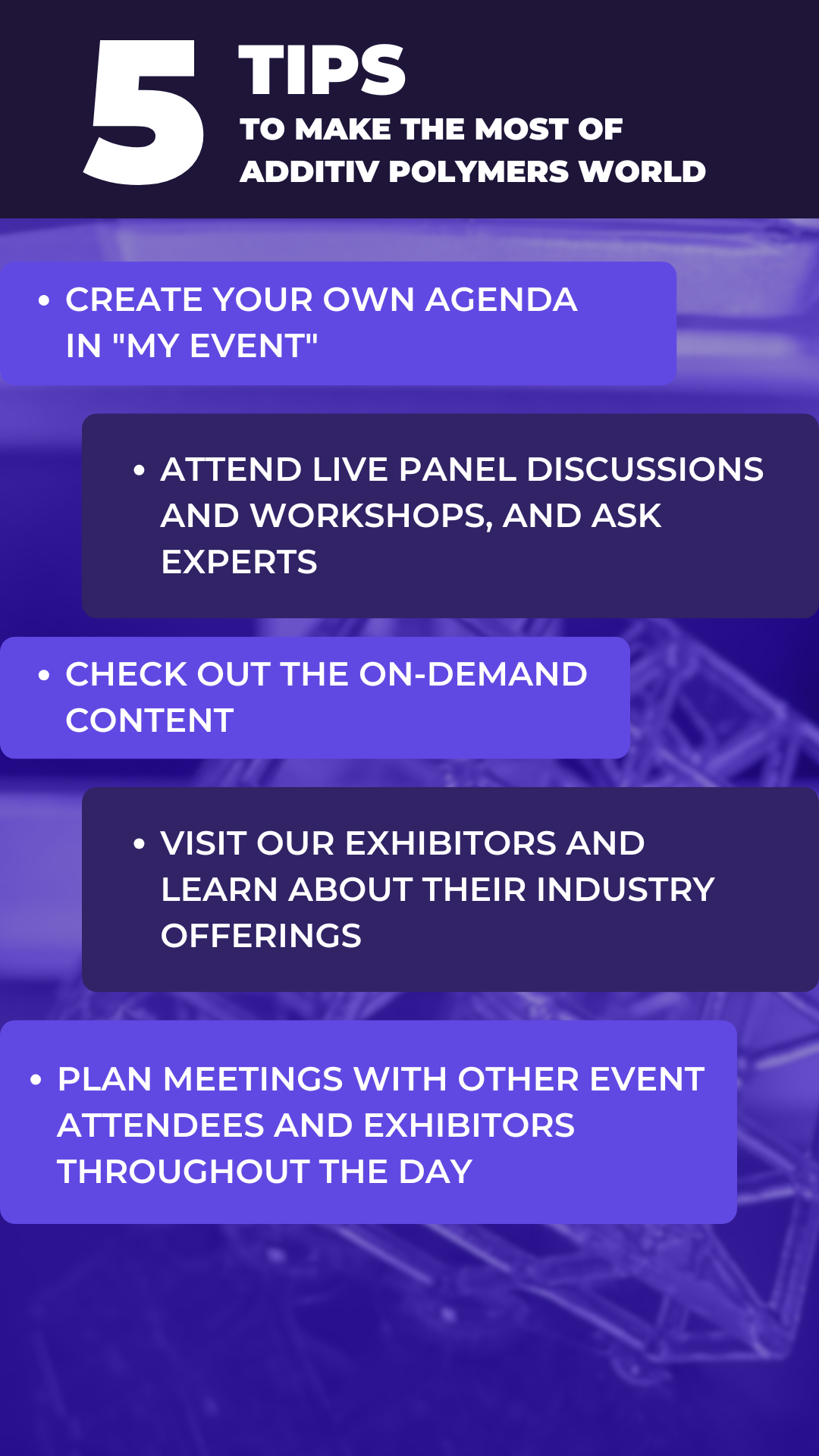ADDITIV Polymers World is an international virtual event focusing on the role and influence of polymer additive manufacturing.