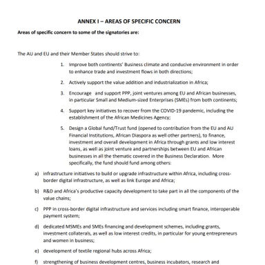 7th EU-Africa Business Forum - Joint Business Declaration - Annex 1: Areas of specific concerns