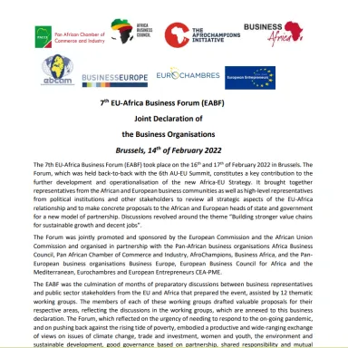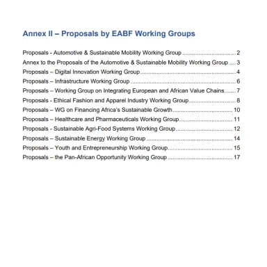 7th EU-Africa Business Forum - Joint Business Declaration - Annex 2: Proposals by working groups