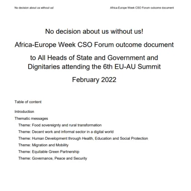 Africa-Europe Week 2022 -Civil Society Organisations Forum - Outcomes Document