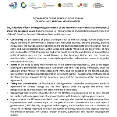 Africa-Europe Week 2022 -Local Authorities - Outcomes Document