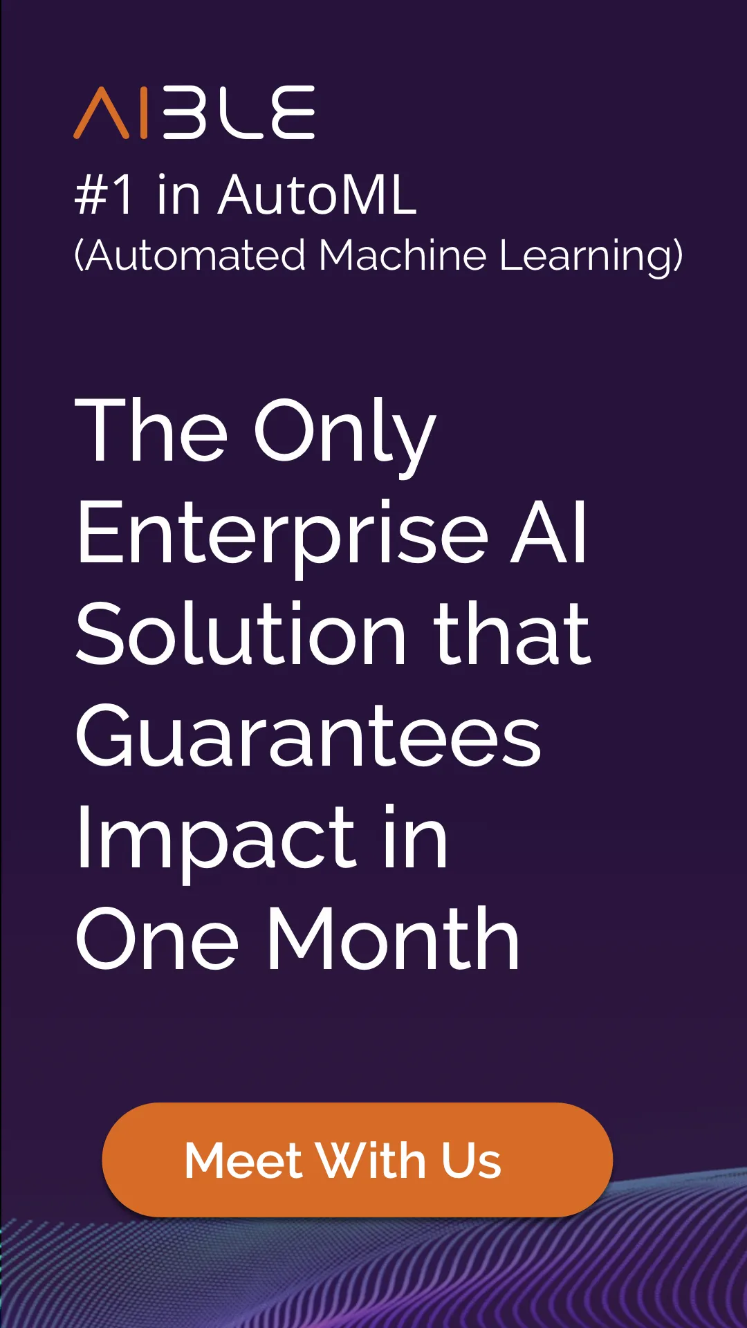 Aible is rated #1 for Automated Machine Learning by a leading analyst firm and the only enterprise AI that guarantees impact in 1 month. The solution helps teams in their AI journey with AI-readiness, data exploration with augmented analytics and driving impact with optimized recommendations in end user applications.