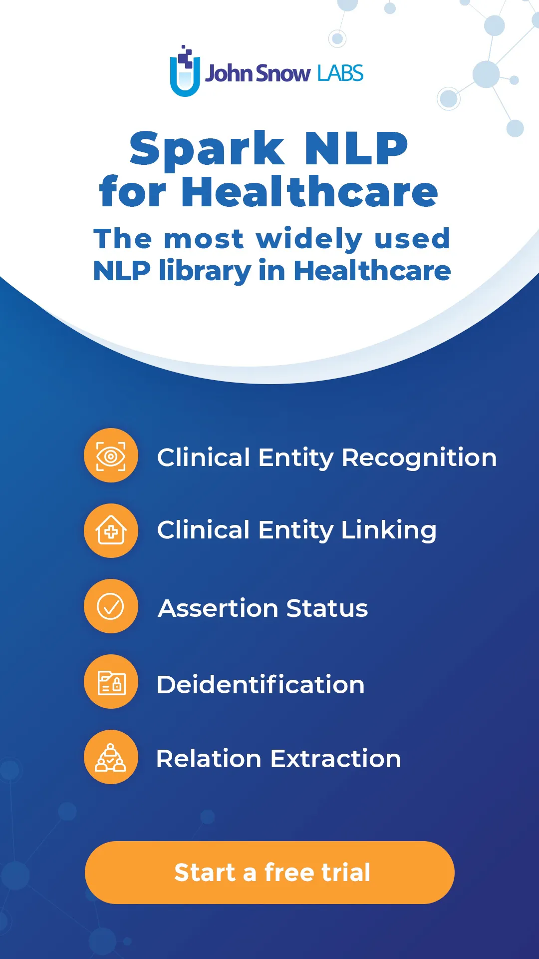 John Snow Labs Inc. is an award-winning AI and NLP for healthcare company, that provides state-of-the-art software, models, and data to help healthcare and life science organizations build, deploy, and operate AI projects. The company is the developer of Spark NLP, the world’s most widely used NLP library in the enterprise, and its award-winning medical NLP software powers some of the world’s leading healthcare and pharmaceutical companies. Spark NLP, the state-of-the-art natural language processing library, has grown to be used by 22% of enterprises within 18 months of its first release. The company is also the creator and host of The NLP Summit, further educating and advancing the global AI community.