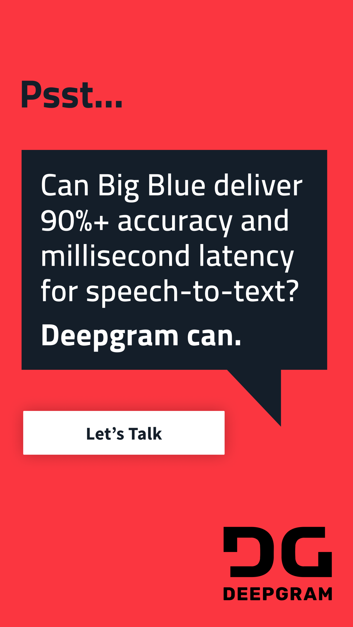 Deepgram is the world’s most accurate Speech Recognition platform. With its patented deep neural network, ease to use API, and state-of-the-art model training capabilities, Deepgram enables organizations to easily embed AI into their business. By unlocking accurate speech data insights, organizations can create delightful customer experiences, improve productivity and generate new business channels faster, more reliably and cost-effectively than ever before. For more information, visit our website.