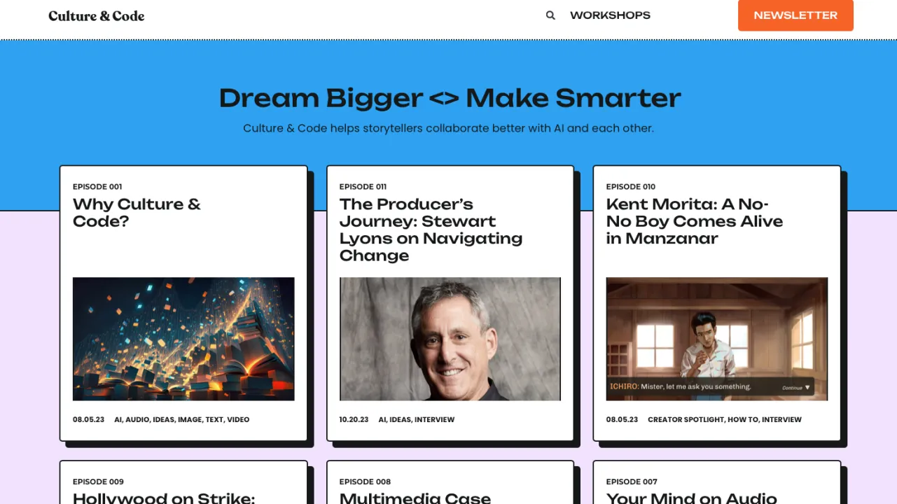 Aimed at creative professionals in media & entertainment, marketing, and communications; Culture and Code explores innovation that’s happening across storytelling, technology, and audiences. As the Internet becomes head’s up, 3D and AI-powered, storytellers and communicators must grasp and master a new medium. It's a medium in which the tools are no longer just tools. Generative AI systems are becoming active contributors to small and large creative projects. Culture & Code equips its listeners to tackle practical and ethical issues as they integrate AI into their craft and organizations. Combining top tier interviews with actionable tips, roadmaps and guides; Culture & Code helps its listeners collaborate with AI to tell the stories and forge the connections they need to imagine a better future --- and make it real.