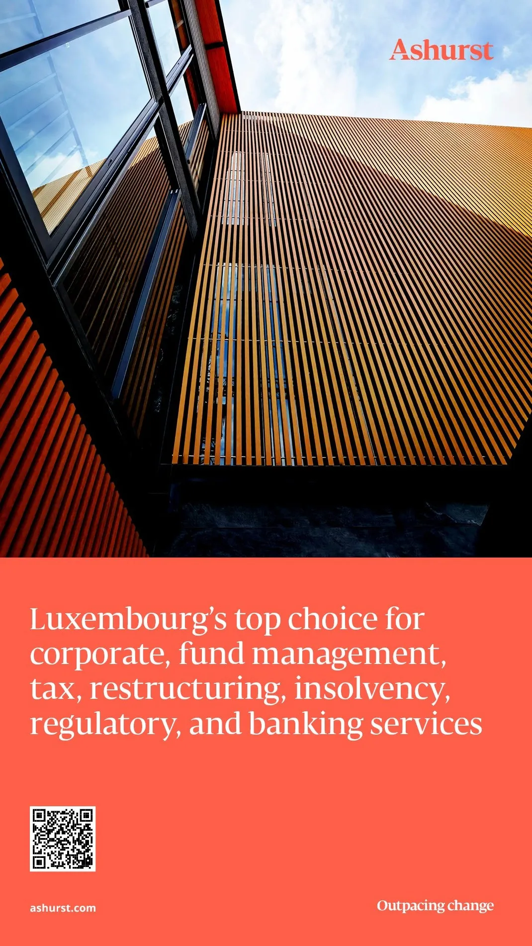 With 31 offices in 18 countries, Ashurst offers the reach and insight of a leading global law firm, combined with the knowledge and understanding of local markets. For five years, our market-leading Luxembourg team has been supporting clients across four key pillars: corporate M&A, investment funds, tax and banking. We pride ourselves on our relentless focus on anticipating the needs of our clients and dedication to delivering integrated solutions that provide the most strategic value for them.