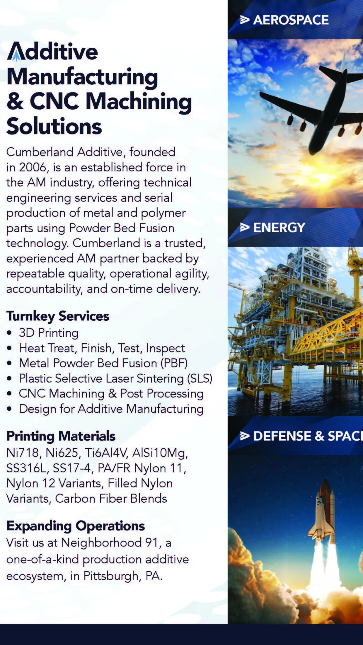 Cumberland Additive has undertaken extensive work to successfully establish serial production programs with Additive Manufacturing (AM), most notably for Aerospace. With the energy industry in a rapid AM adoption phase, Cumberland has leveraged our aerospace qualification expertise to accelerate success with Energy applications. Our presentation will seek to explore technical and process considerations that are important to the energy sector as it relates to AM part production. The content to be presented is inspired by questions Cumberland receives from customers, as well as lessons learned while actively working in the industry for over 15 years.