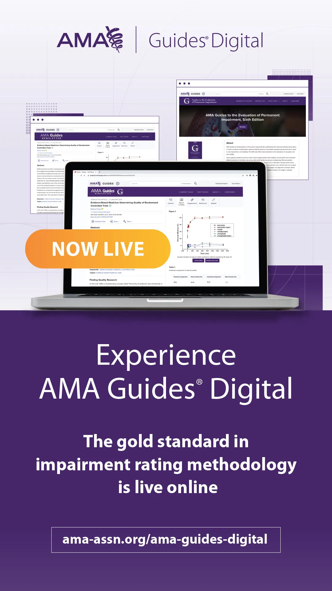 The American Medical Association is committed to providing the most current evidence-based science and medicine to assure medical evaluators can provide fair and equitable ratings for every patient evaluated using the AMA Guides® to the Evaluation of Permanent Impairment.