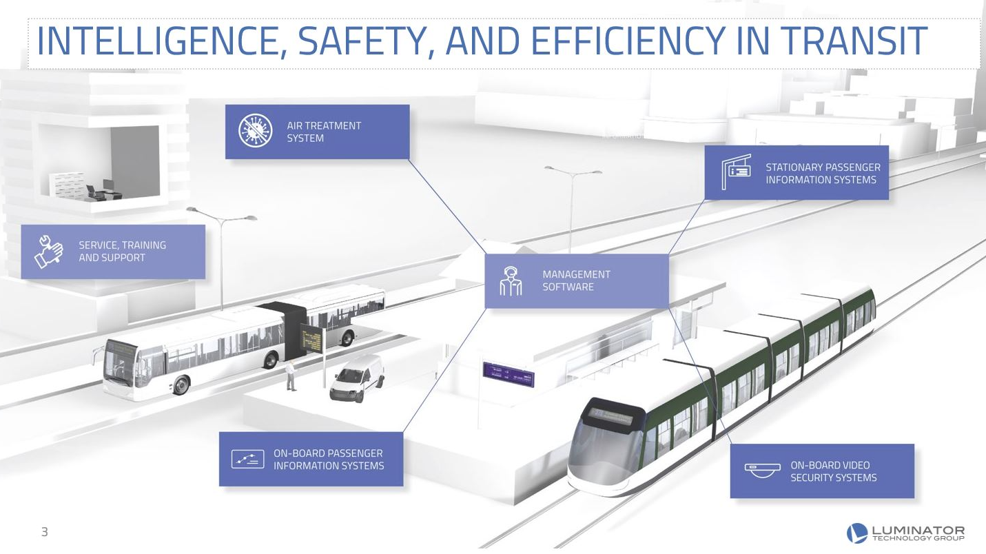 Luminator Technology Group offers a fully integrated, cost effective and reliable suite of world-class rail technology solutions. Luminator's best-in-class passenger information systems, communications, video surveillance and entertainment solutions are designed to deliver exceptional efficiency and value for our customers.