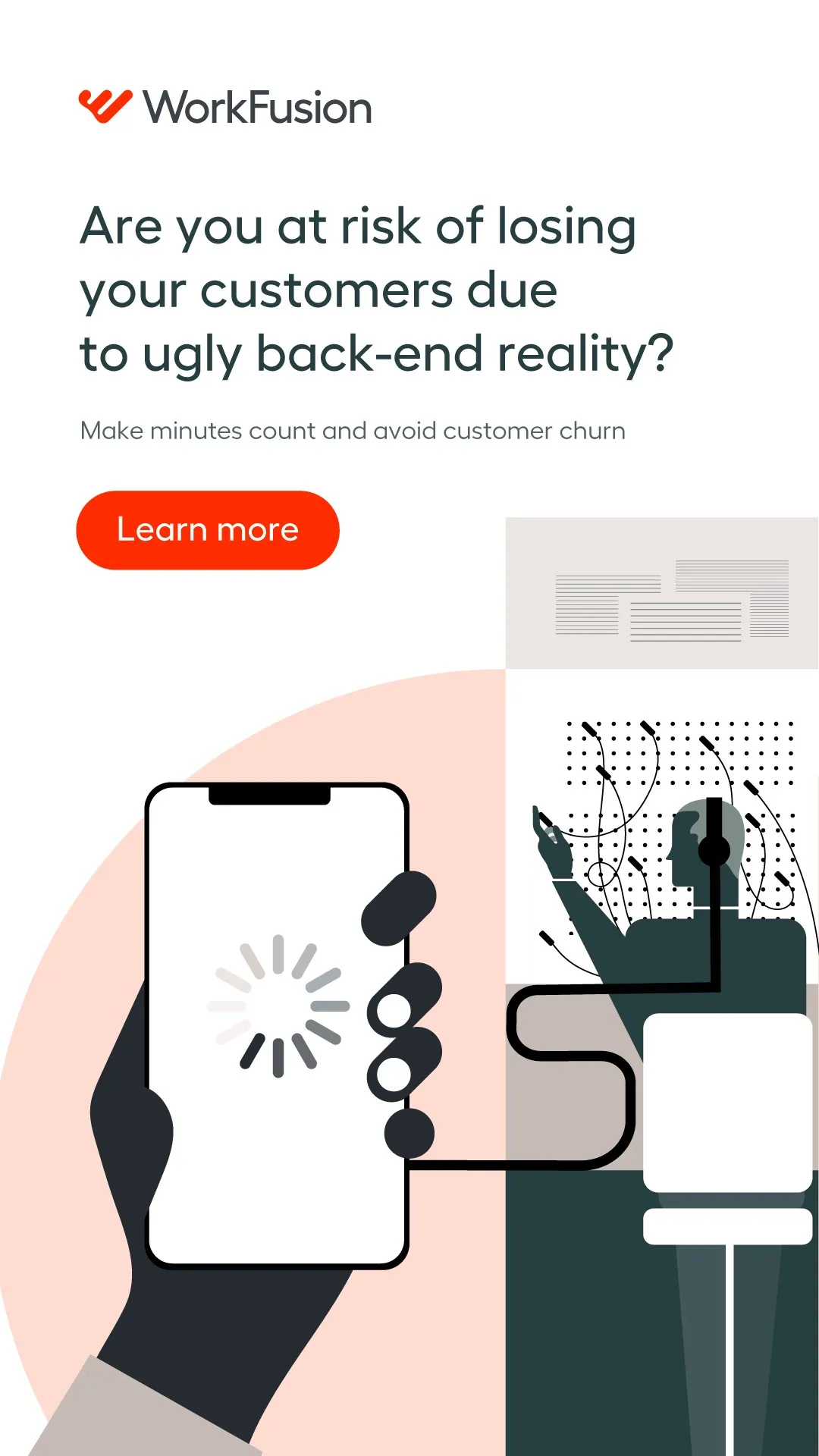 WorkFusion is accelerating the world’s transition to more meaningful work. Our Intelligent Automation solutions help customers reach unrivaled speed and scale, reduce costs, up-skill workforces and unlock growth.