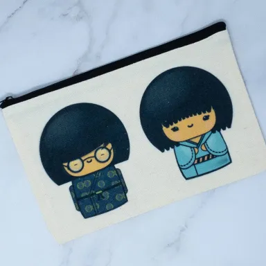 Blue Green Kokeshi Doll Cosmetic BagSnarky Hapa