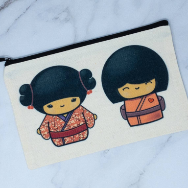 Pink Kokeshi Doll Cosmetic BagSnarky Hapa