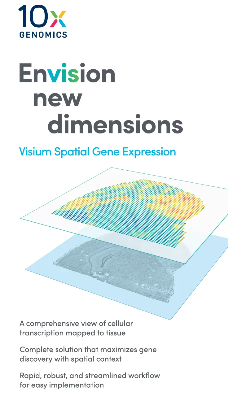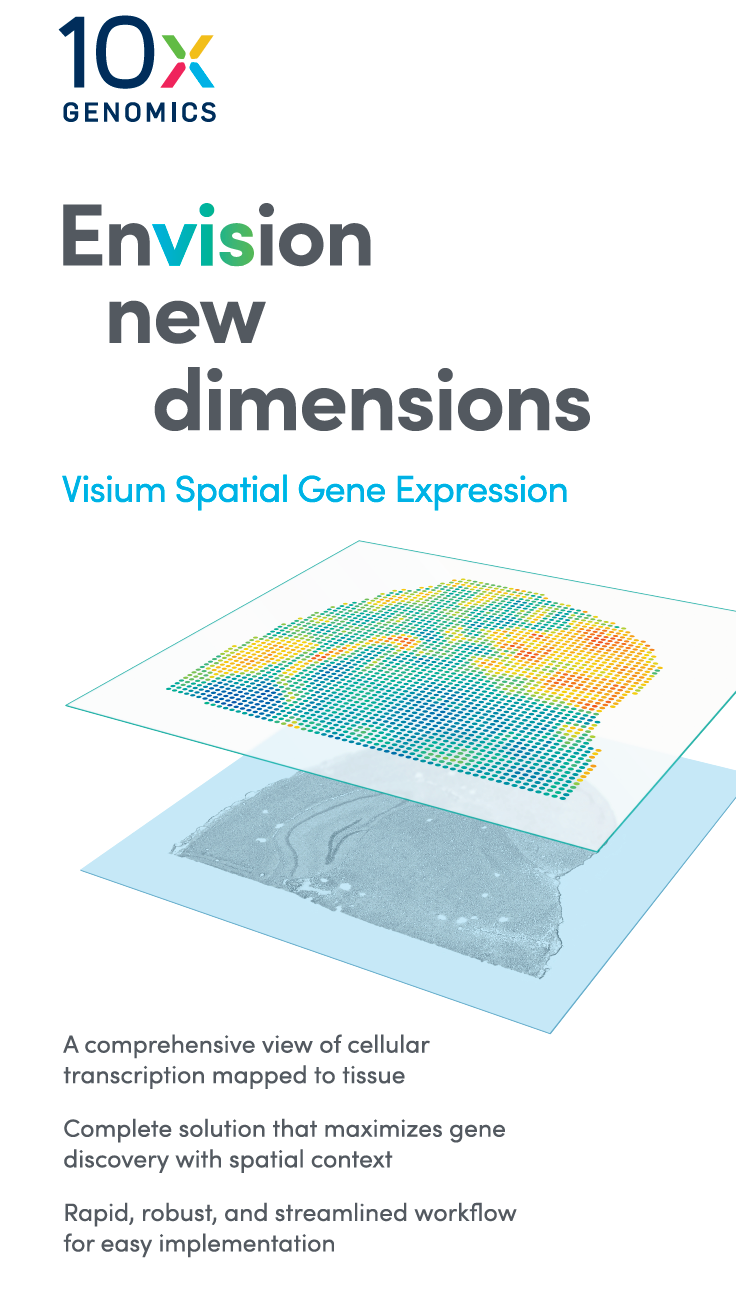 Progress in the life sciences will require the ability to measure biological systems in a much more comprehensive fashion at the right resolution and scale. The complexity of biology requires technologies that allow researchers to experiment on biological systems at previously inaccessible scales. The Chromium and Visium product lines from 10x Genomics provide important improvements in resolution and scale along distinct but complementary dimensions of biology. Our Chromium products enable high-throughput analysis of individual biological components, such as single cells. Our Visium products enable analysis of biological molecules within their spatial context, providing localization information on the analytes that give insight into higher order biological structure and function.