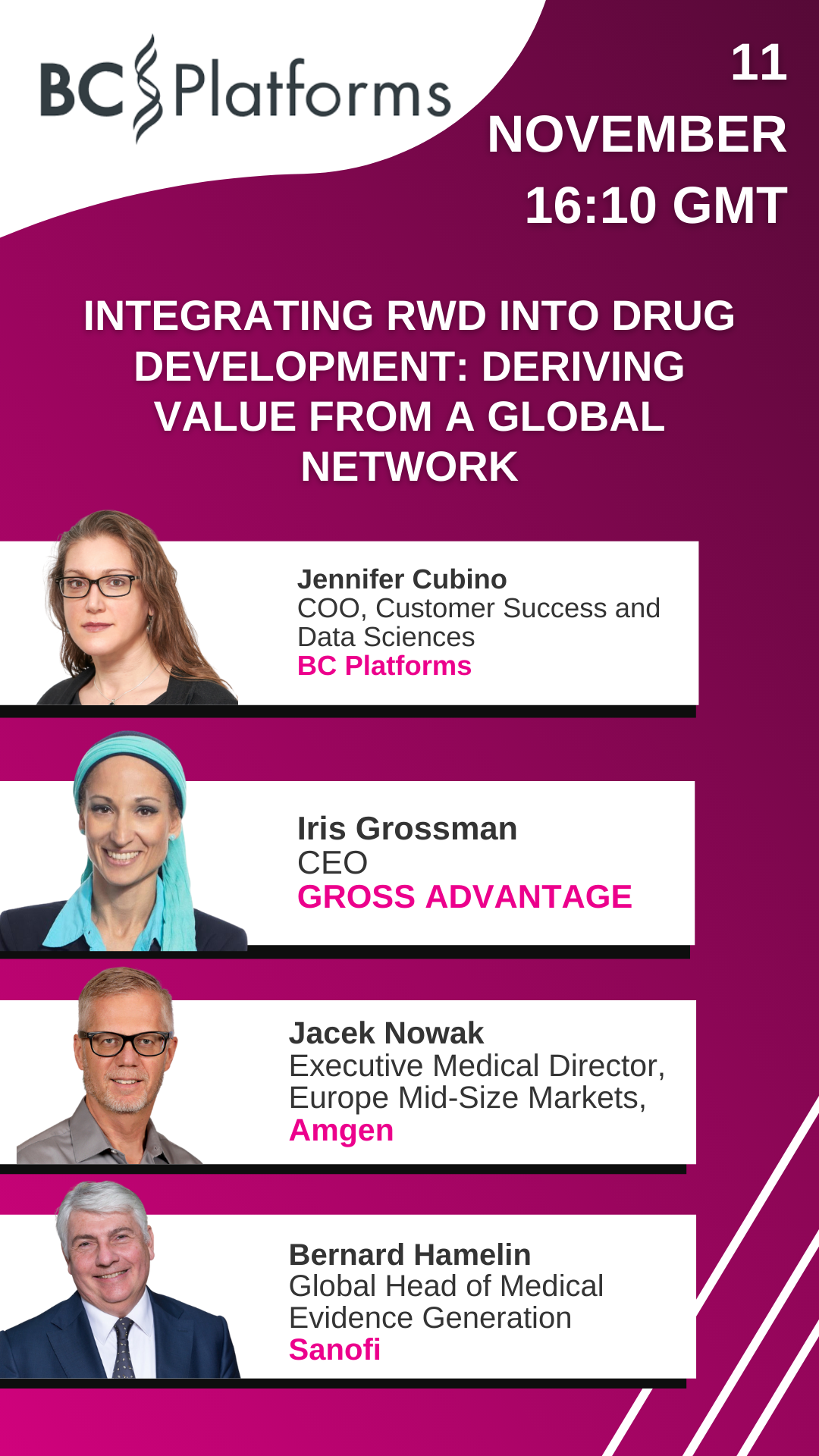 Additionally, BC Platforms has developed a Global Data Partner Network BCRQUEST.com, which provides genomic and clinical cohort data for pharmaceutical and medical research and development.