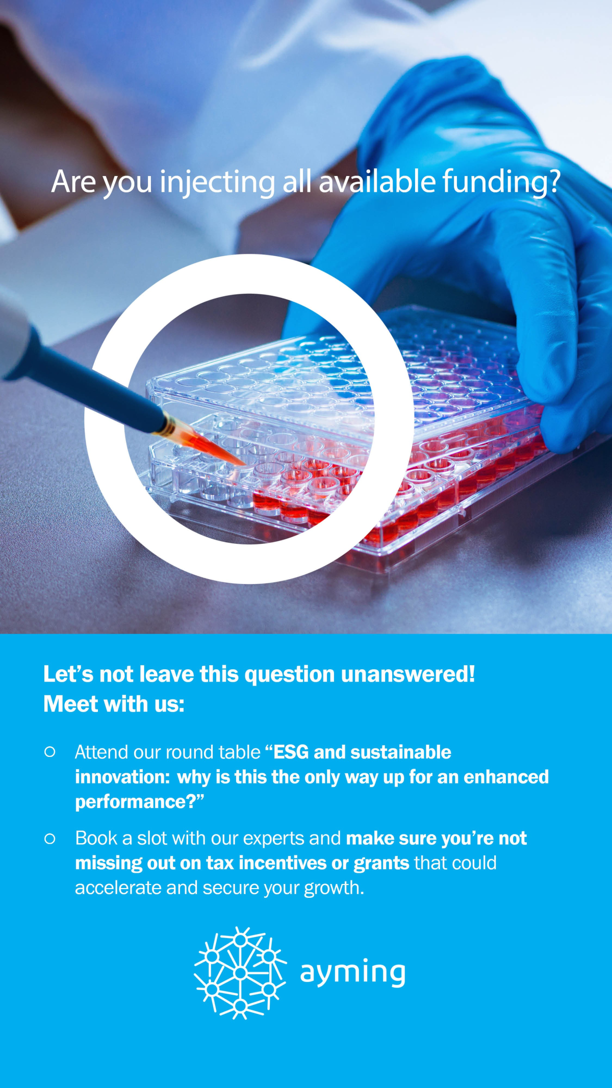 With presence in 15 countries, Ayming teams are able to support biotech companies in their international and local R&D funding strategies and secure their R&D tax credits, innovation income tax deductions -where applies-, but also European, national and regional grants.