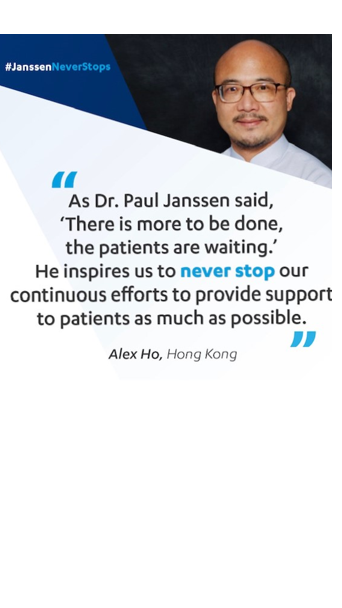 At Janssen, we’re creating a future where disease is a thing of the past. We’re the Pharmaceutical Companies of Johnson & Johnson, working tirelessly to make that future a reality for patients everywhere by fighting sickness with science, improving access with ingenuity, and healing hopelessness with heart. We focus on areas of medicine where we can make the biggest difference: Cardiovascular & Metabolism, Immunology, Infectious Diseases & Vaccines, Neuroscience, Oncology, and Pulmonary Hypertension.
