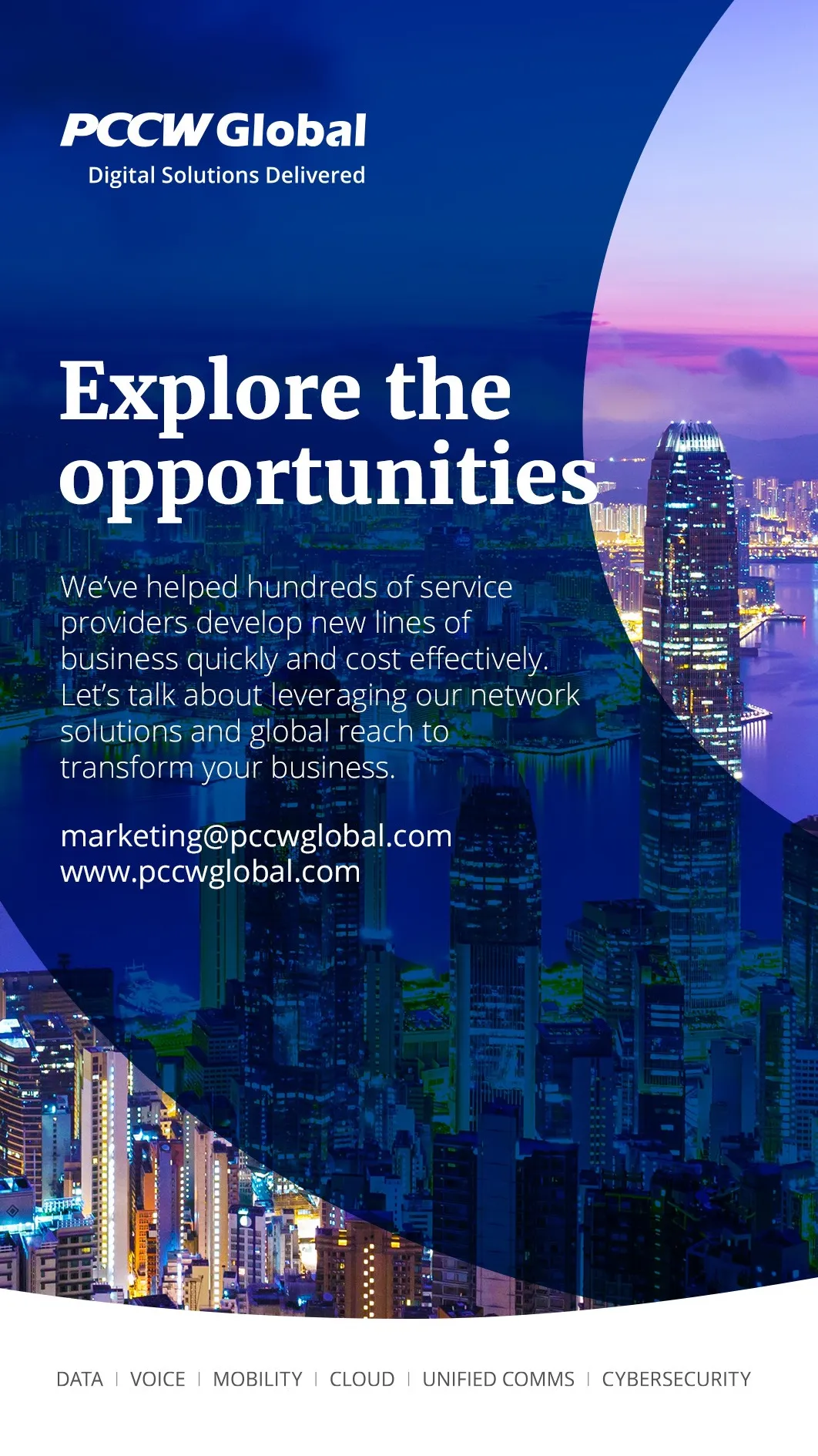 PCCW Global is a leading international communications service provider, offering the latest mobility, voice and data solutions to multinational enterprises, telecommunications partners, cloud and application service providers. With a network footprint reaching over 3,000 cities in 160+ countries across 5 continents, our truly global coverage combined with local on-the-ground knowledge has helped us build best-in-class global connections linking Africa, the Americas, Asia Pacific, Europe and the Middle East. Our network supports a portfolio of integrated communications services including connectivity, applications, and tailored solutions integrated and orchestrated by the Console Connect on-demand digital Software Defined Interconnection ® platform, one of the first global platforms to fully automate switching and routing of all communications for seamless interconnection.