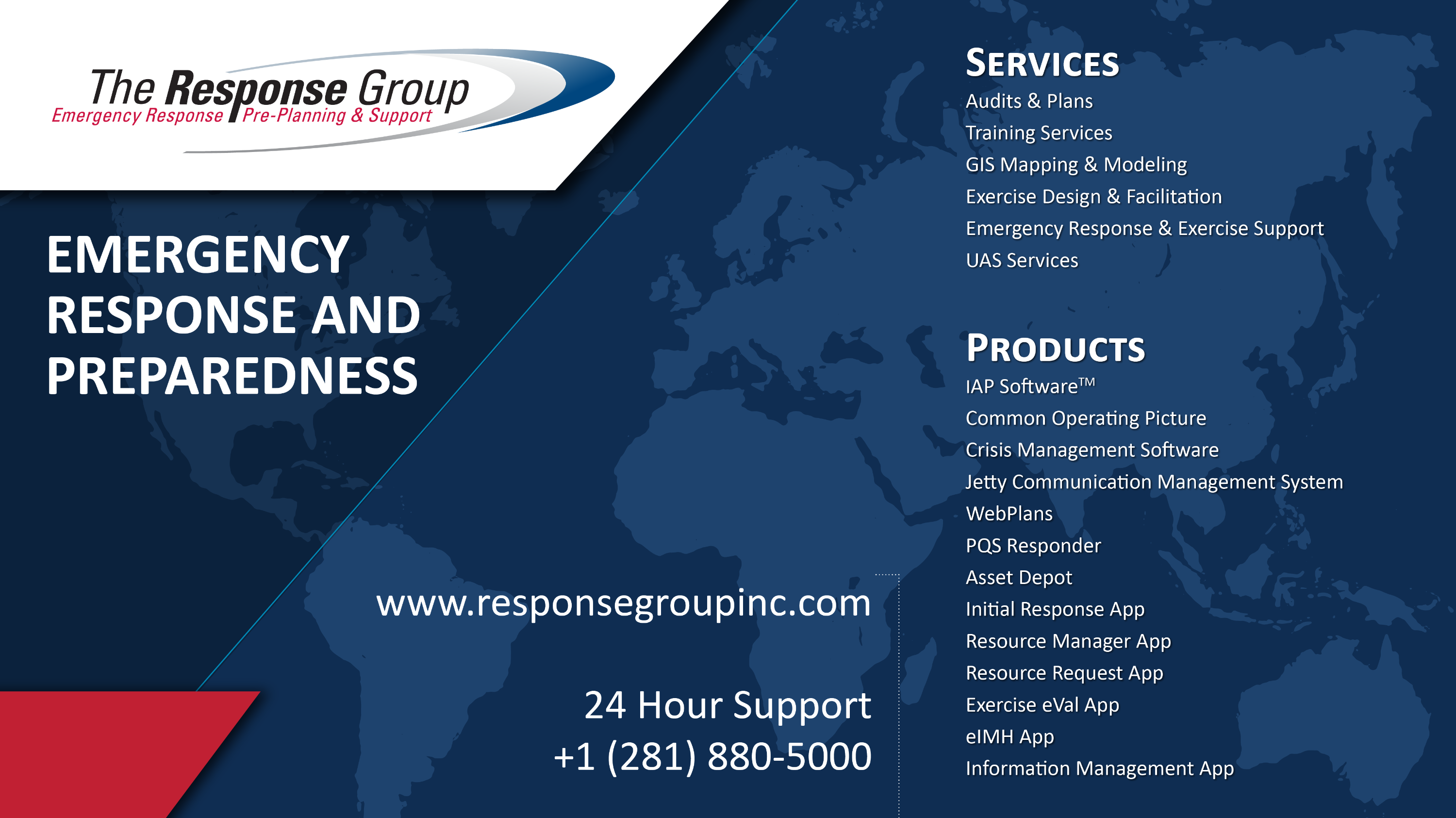The Response Group is the industry leader delivering superior products and services to global emergency response communities. With a suite of software and services from plans to actual response support we understand that Your Ability to Response is Our Shared Responsibility®.