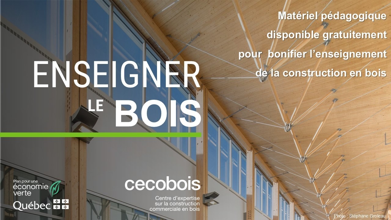 Afin de permettre au personnel enseignant de bonifier leur enseignement sur la construction en bois, Cecobois a lancé l’initiative Enseigner le bois, financée par le MRNF dans le cadre du plan pour une économie verte (PEV 2030).
