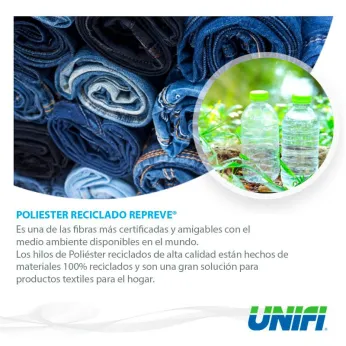 Ofrecemos diversas líneas de productos y además una línea ecológica de hilo (Poliéster y Nylon) hecha a partir de botellas plásticas recicladas llamada “REPREVE”. Este hilo es utilizado para la fabricación de ropa deportiva, medias y ropa exterior en general.
