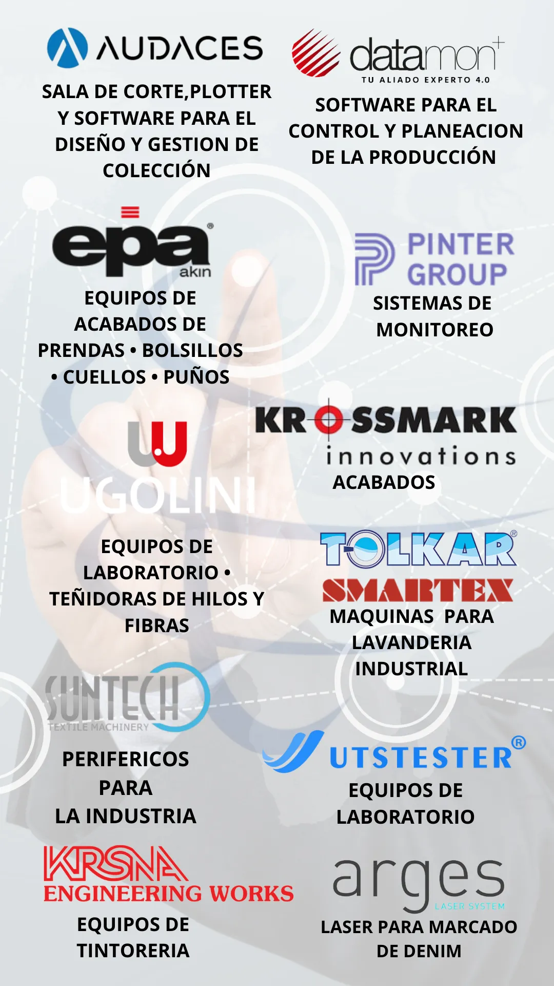 Audaces - Software para el diseño y la gestión de la prenda (4D,patronaje, ficha tecnica y costeo), Plotters, maquinas de corte inteligente, extendedoras)