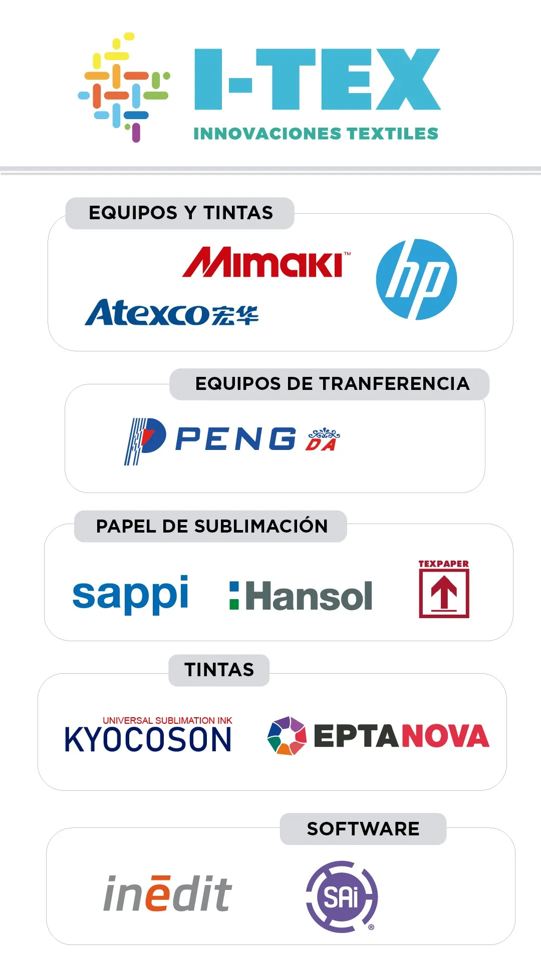 Somos distribuidores equipos de sublimación de marcas Mimaki - HP - Fedar y transferencia de marca Pengda para la Línea PymeSomos distribuidores de equipos de sublimación de marcas Atexco - Mimaki y de transferencia de marca Pengda para la Línea Industrial.Contamos con la solución completa ya que contamos con papel de sublimación de marcas Sappi - Hansol - Evon y papel protector de la marca Texpaper