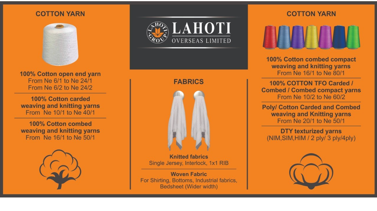 We are leading manufacturer of 100% Cotton yarns, grey woven and knitted fabrics. We have capacity of 150,000 spindles, 350 Airjet looms and 35 knitting machines.