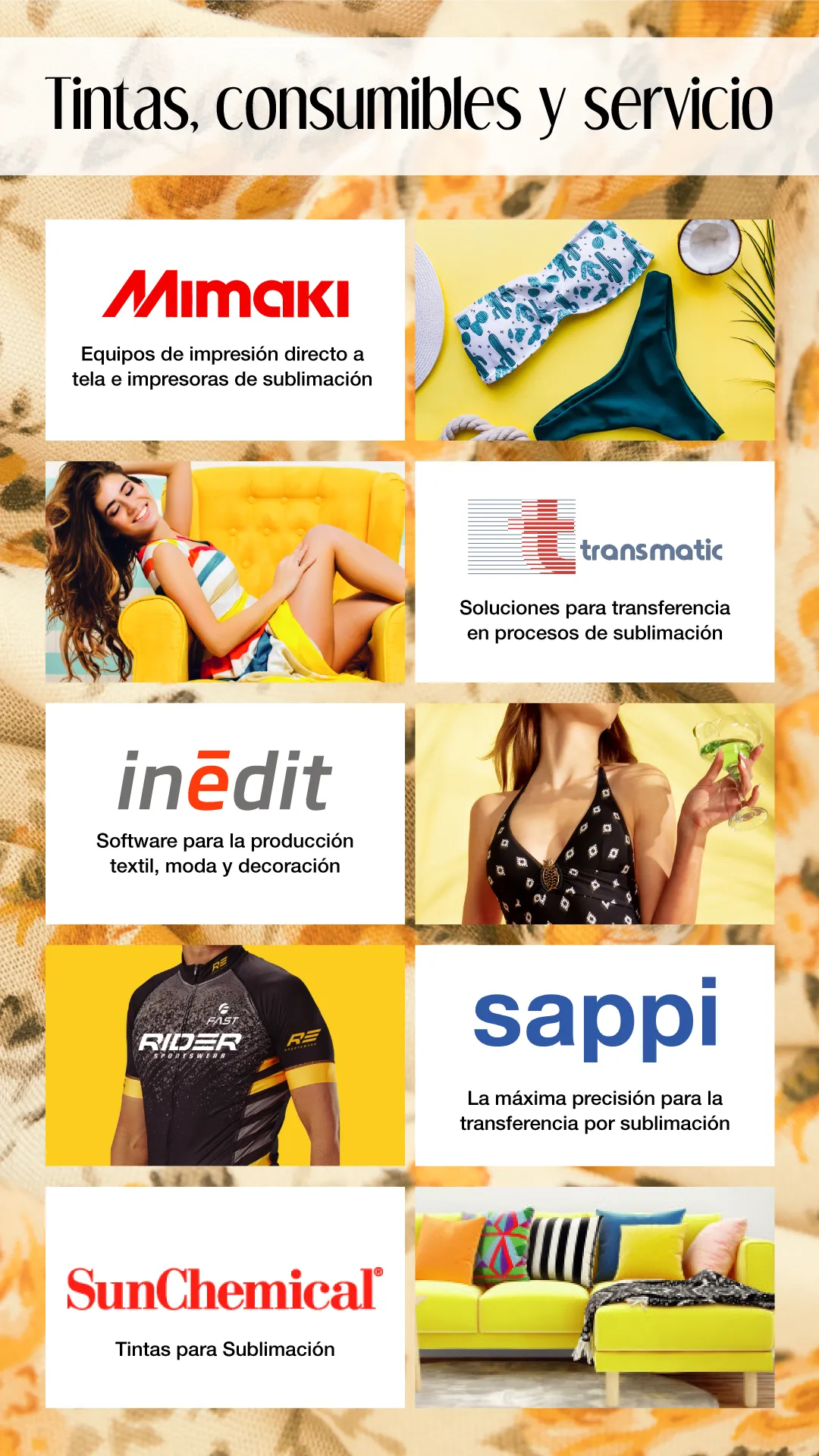 Equipos Mimaki de sublimación, Equipos de impresión directa a algodón en pigmento y reactiva. Tintas de sublimación Mimaki, Calandras Transmatic, papeles de sublimación y Tintas Huntsman. Servicio técnicoEquipos Mimaki de sublimación y de pre-tratamiento, Equipos de impresión directa a algodón en pigmento y reactiva. Tintas de sublimación Mimaki, Calandras y termofijadoras Transmatic, papeles de sublimación y Tintas Huntsman. Servicio técnico