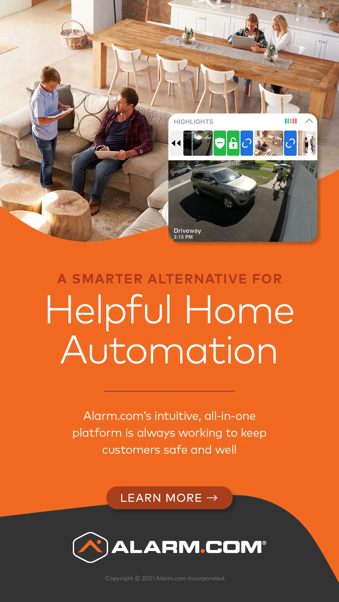 Alarm.com is the leading platform for the intelligently connected property. Millions of consumers and businesses depend on Alarm.com's technology to manage and control their property from anywhere. Our platform integrates with a growing variety of Internet of Things (IoT) devices through our apps and interfaces. Our security, video, access control, intelligent automation, energy management, and wellness solutions are available through our network of thousands of professional service providers in North America and around the globe. Alarm.com’s common stock is traded on Nasdaq under the ticker symbol ALRM.