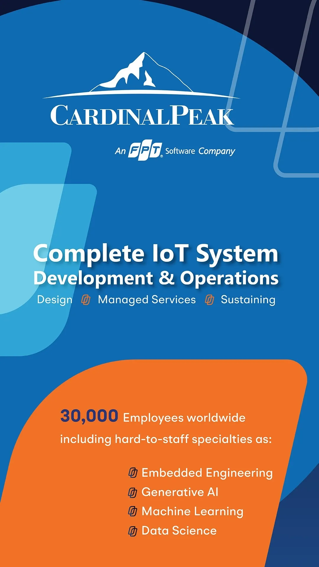 Cardinal Peak develops and operates IoT products on behalf of our clients. From initial minimum viable product design through continuous feature innovation, we help clients with all their IoT product needs so their devices stand out in the market. As a wholly owned subsidiary of the leading global technology and IT services provider FPT Software, we have the talent your unique product requires — more than 100 engineers in Colorado and 30,000 employees worldwide — with proven expertise in smart home, automotive and health care.