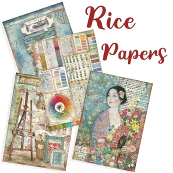 STAMPERIA started growing rapidly because the demand was high and at the time it was difficult to find materials on the market. The first collection included stencils, stamps, acrylic paints as well as decoupage papers and rice paper, a sensational novelty at the time as Stamperia was the first company in the world to print on rice paper. The first great classic design was Flowers and Poems, a kind of journal that was unique as at the time it was very original to match words and paints.