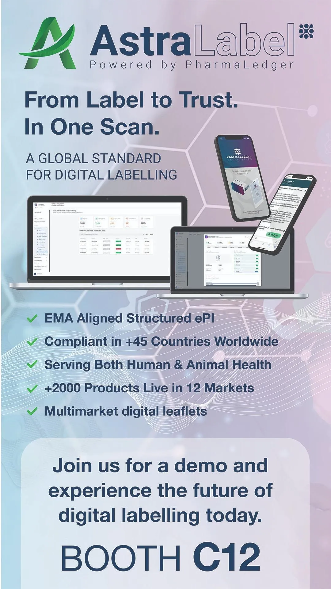 PharmaLedger is a global non-profit association and technology organization that brings together life sciences stakeholders to develop GxP validated, scalable, interoperable, and sustainable infrastructure and applications. Built on the PharmaLedger Product Trust Platform 2.0, PharmaLedger brings to 2026 : AstraLabel™, our regulatory approved digital labelling distribution solution, AstraTrace™, our supply chain observability and logistics solution, and AstraEngage™, to bridge the divide between trusted information and patients. PharmaLedger's neutrality and extensive partner network helps organizations innovate and maintain continuous compliance in an evolving digital health and regulatory landscape.