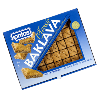 Fundada en 1987 en Paterson, Nueva Jersey, Kontos Foods es el proveedor número uno de alimentos mediterráneos en la costa este. Los productos manufacturados incluyen pan plano estirado a mano, masa Fillo y productos de masa Fillo como Baklava, Spanakopita, crepes y Loukoumades/Beignets.