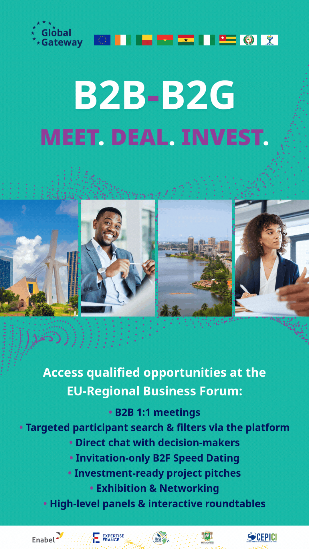 The event is aligned with the EU' s Global Gateway strategy and Team Europe initiatives, and offers a platform for B2B, B2G and G2G exchanges, project presentations, thematic panels and investment clinics.
