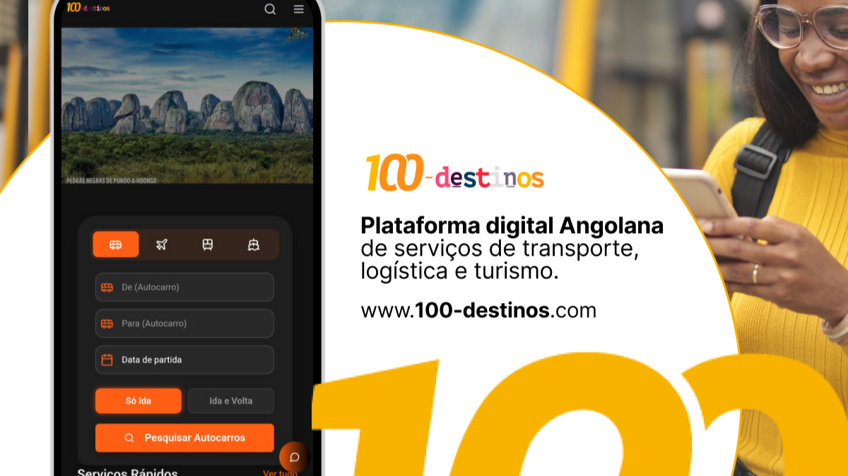 100-Destinos é uma plataforma digital que integra o Transportes, logística e turismo em único lugar, nela se pode comprar bilhetes de passagem rodoviário, aéreo, ferroviário e marítimo, assim como enviar ou receber mercadorias e por fim pesquisar e reservar alojamentos e turismo. somos uma plataforma que informa em tempo real os melhores preços, destinos, horarios...