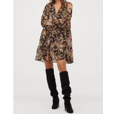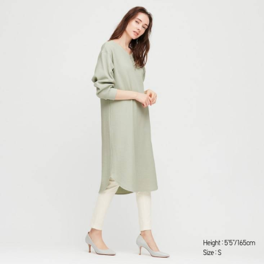 EMBOSSED KNITTED DRESS WITH LONG SLEEVES AND V-NECK FOR WOMENUniqlo