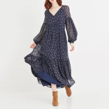 EMBOSSED KNITTED DRESS WITH LONG SLEEVES AND V-NECK FOR WOMENUniqlo