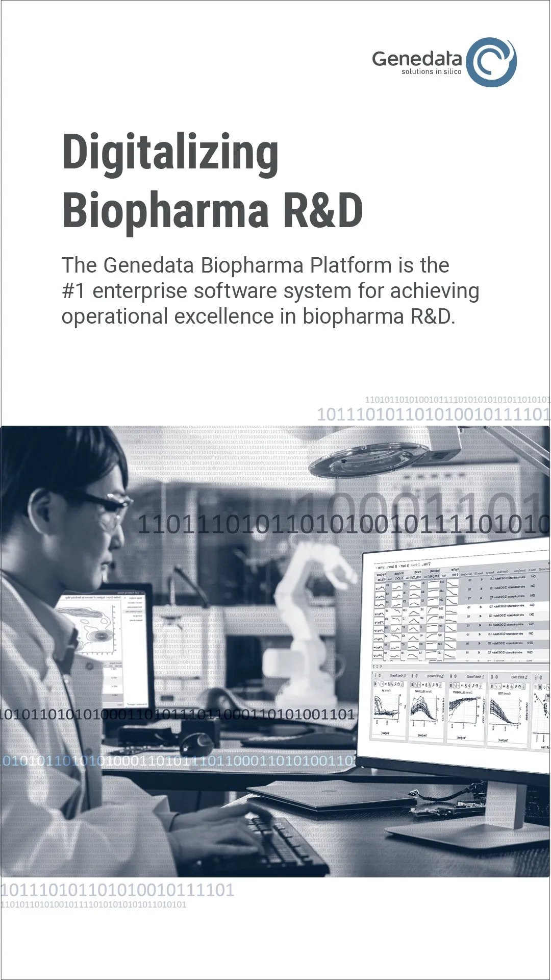 With award-winning platforms and deep domain expertise, Genedata solutions boost the efficiency, throughput, and quality of large-molecule R&D. Genedata platforms support the entire biologics workflow, from screening, protein engineering and optimization, expression, purification, MS characterization, analytics and QC, and developability assessment to upstream and downstream process development and drug formulation.