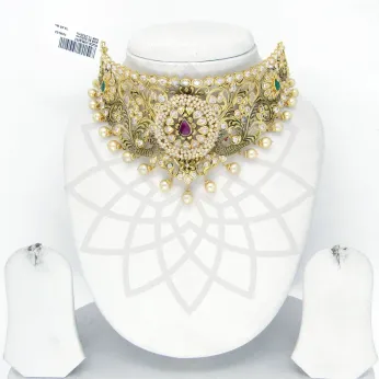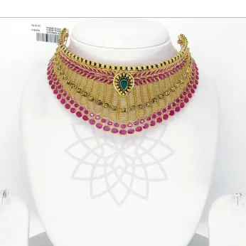 Meenakshi Jewellers is India's leading manufacturer, wholesaler and exporter of 22 carat gold jewellery and gem encrusted gold ornaments. Behind this enterprise is the prestigious Navdurga Group, established in 1951. Located in Banjara Hills, Hyderabad, Meenakshi Jewellers boasts the ability of its experienced and capable craftsmen. Their detailed and delicate work is enhanced by the quality of the gemstones used, and their traditionally-inspired designs appeal to customers with an eye for perfection.