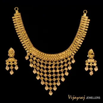 Vijayraj Jewellers incoprated 32 years ago, is a wholesaler, an exporter, and a manufacturer of plain gold jewellery. Through its moto, 'QUALITY THROUGH SIMPLICITY', they have pioneered the light weight "lappa" necklace sets to service the inudustry and its customers. Being an exporter for over a decade, Vijayraj Jewellers takes an oath to provide standardised-exemplary quality and purity to their clients across the continents. With this 365 day virtual platform, customers will be abe to access the variety of our plain light weight gold ornaments from anywhere across the internet.